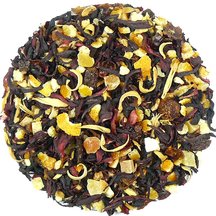 Składniki: hibiskus, pomarańcza suszona, skórka róży, papaja, skórka pomarańczy kandyzowana, kwiat pomarańczy, aromat.