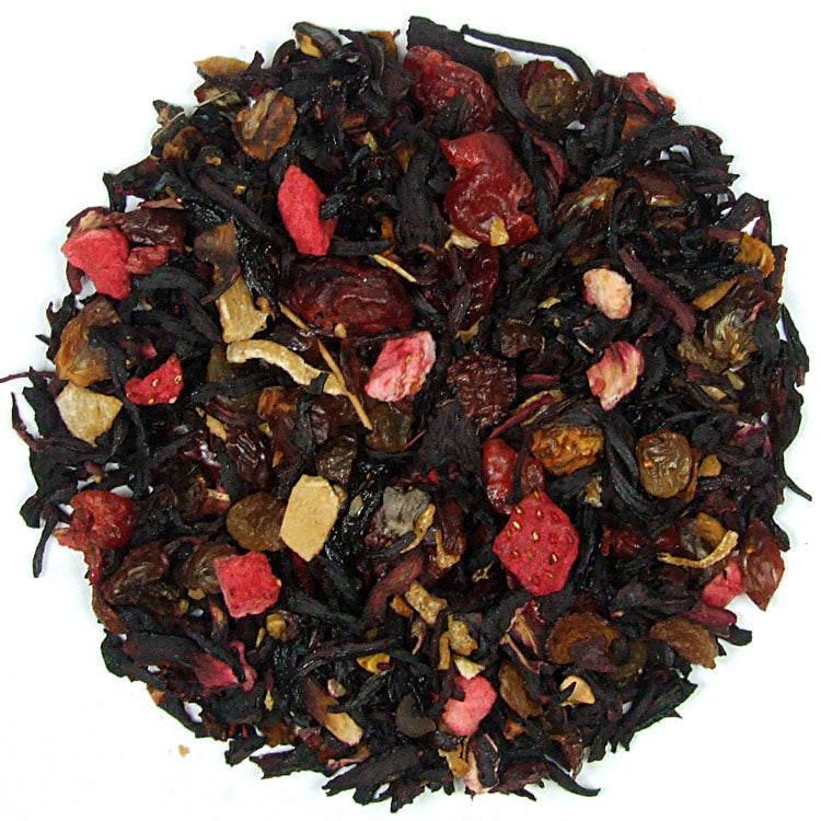 Składniki: hibiskus, rodzynki, skórka róży, ananas, wiśnia liofilizowana, truskawka liofilizowana, aromat.