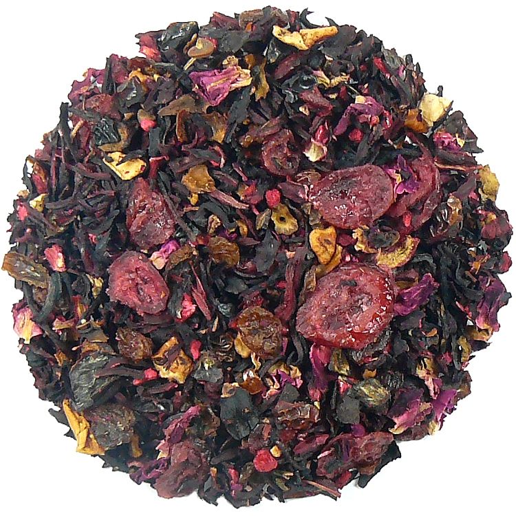 Składniki: hibiskus, żurawina, skórka róży, rodzynki, malina liofilizat, jabłko, płatki róży, aromat.